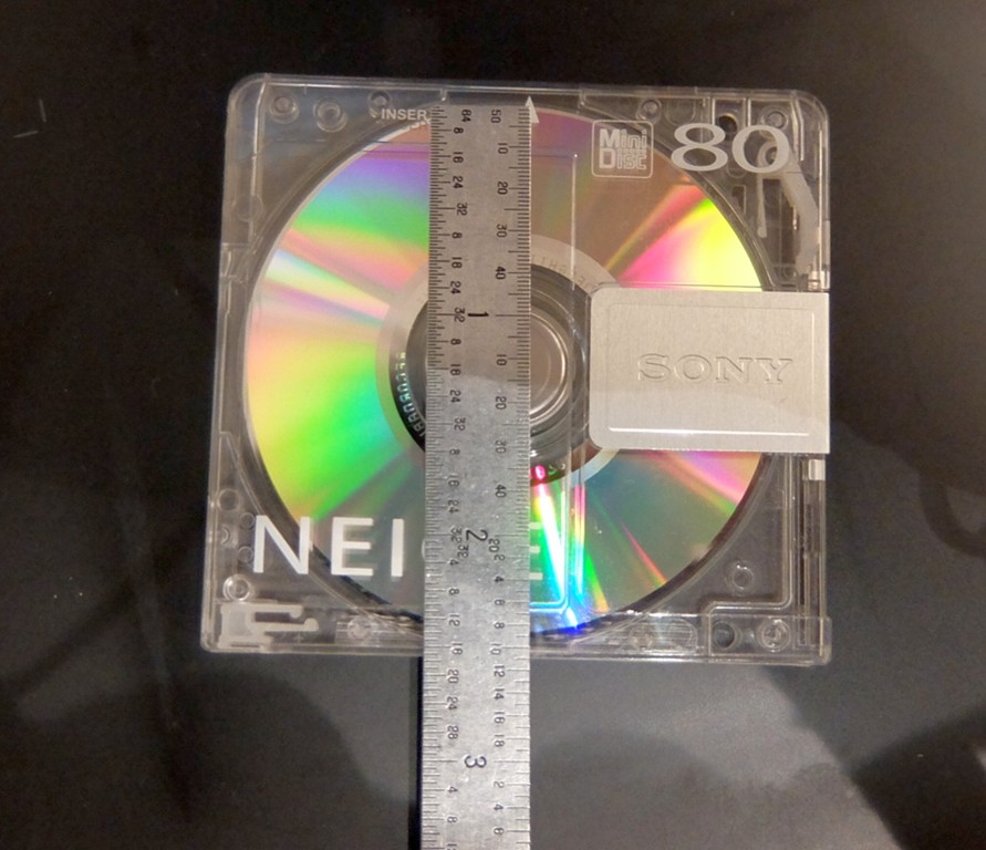 ミニディスク内の円盤の直径は、2.5インチ。(約63.5mm)です。